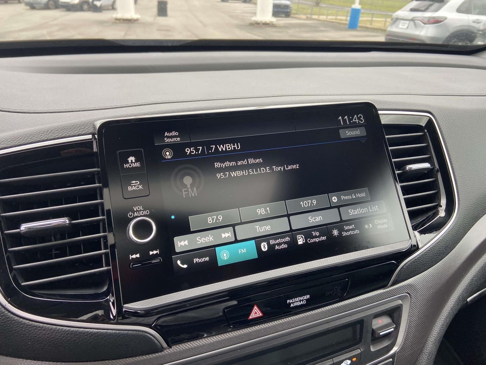 - Radio: 215-Watt Audio System w/7 Speakers -inc: subwoofer, 9" color touchscreen, Bluetooth® streaming audio, Speed-Sensitive Volume Compensation (SVC), wireless Apple CarPlay/Android Auto compatibility and 2.5A USB-A data port in front console, HondaLink, Select HondaLink features are complimentary, 36-month complimentary trials are available for security and remote packages, A subscription is required to continue HondaLink services after the trial ends